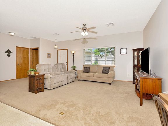 Don't miss this opportunity to own a sunny patio home on a premium wooded lot. This beautiful residence features two bedrooms, two bathrooms, and a spacious two-car garage. The open floor plan is perfect for entertaining and relaxing, with built-in display shelves/bookshelves and loads of countertop and cabinet space in the fully applianced kitchen. The kitchen opens seamlessly to the dining and living rooms, all with vaulted ceilings, creating a spacious feel. Enjoy the year round outdoor experience in the sunroom/screened-in porch or take advantage of the added concrete patio for grilling. The property is backed by a dense tree area, offering maximum privacy, lush views and amazing wildlife sightings, including rabbits, turkeys and foxes. Centrally located in West Wichita , the low maintenance quiet neighborhood is the perfect place to call home. The sellers have meticulously maintained the home over the years with a new stove and microwave, new roof and gutters installed 6 years ago, new interior paint and exterior paint 8 years ago. The home features low maintenance concrete siding, friendly neighbors and the simplicity of living in a development that handles many maintenance needs. The HOA covers lawn care, fertilizing, sprinklers, snow removal, trash, mowing and edging - all on a community irrigation well. Don't miss out on this exceptional home and serene lifestyle! Please note: No Rentals or Airbnb allowed. Move in Ready!