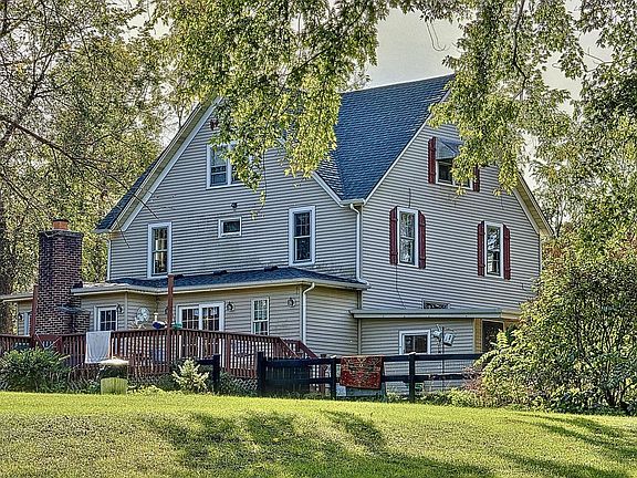Welcome to this charming 3-story farmhouse nestled on 4.6 acres of picturesque land, featuring a classic Sears Catalog barn-an ideal canvas for a modern homestead. This inviting home boasts a spacious layout across three finished levels, offering 6 bedrooms and 2.1 baths. Enjoy a sunny library, a formal dining room, a formal parlor, powder room, & a beautiful stone fireplace in the living room. Recessed lighting & a large country kitchen with a walk-in pantry add to the appeal. 4 spacious bedrooms & a full bath plus 2 linen closets are on the second floor which also has 7 ft ceilings. The third floor is a versatile space, potentially transformed into a private primary suite complete with its own bath, a walk-through closet, & breathtaking views of the property. The expansive barn is structurally sound & serves as a garage, workshop, storage & an area that could be for livestock. A stream meanders through the property, dividing the back wooded area with existing trails, perfect for exploration. Zoned A-1 (Agricultural), this property allows for horses or other livestock. Recent updates include a new roof, gutters & downspouts on both the home & barn (2022), upgraded electric service in the barn (2020), resurfaced deck with structural repairs and a new ramp, & natural gas grill hookup (2019). Interior improvements include new paint on most of the first and second floors (2018/2019), beadboard panels in the master bedroom (2018), refinished original wood floors (2018), a new water pressure tank (2022), high efficiency furnace, central humidifier, water heater, & water softener (2019). Partial estate fencing (2020) is present on the front and east side of the yard. **Please note that the home and all personal property are being sold as-is. This property is not eligible for FHA or VA financing. AGENT RELATED SELLER** While it may require some updates, with your vision and effort, it has the potential to become the hobby farm of your dreams.