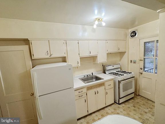 Spacious three bedroom brick townhome featuring a large covered front and back porch, also a full walk up basement leading to a large fenced private backyard. Make this former beauty shine again.