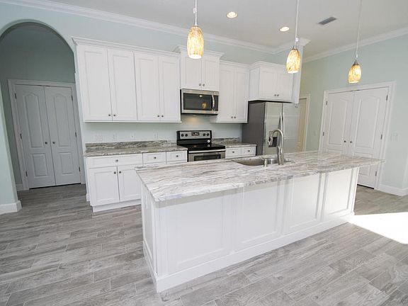 Gorgeous NEW CUSTOM built home just completed! Porcelain tile floors everywhere except bedrooms, INCREDIBLE granite counters throughout including in the laundry room (wait until you see them), if your looking for an open great room floor plan this is the home for you! As you enter this bright and open home you walk into an expansive living area including dining area which overlooks this absolutely beautiful contemporary kitchen with stainless appliances, soft close drawers and cabinet doors ,HUGE breakfast bar with stainless farmhouse sink with eat in kitchen. Second bathroom features full tiled shower with patio pool door (should homeowner decide to add a pool), lots of closet spaces, 1/2 bath off great room too. Master suite is huge with a Tray ceiling that leads to His & Her separate