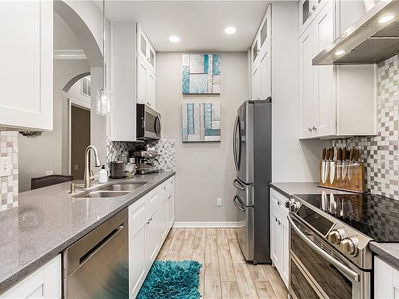 This beautiful Santa Rosa condo in Bella Trae is one you won't want to miss. The fully updated condo includes white solid wood cabinetry, new backsplash, upgraded range hood, double oven, granite countertops in the kitchen, and so much more. The option of having double masters with en suite baths and large walk in closets is an added bonus! The extended great room area opens up to a screened in lanai that overlooks the pond. It is the perfect place to unwind at the end of the day. The condo also includes an exterior storage and a covered / assigned parking space. Your HOA dues for the Ventura community include internet, cable, pest control, water, and building elevators. The community of Bella Trae has a stunning clubhouse that includes a state of the art gym, fitness studio, zero entry saltwater pool, media room, billiards room, bocce ball court, a putting green, social activities for all, and much more. Conveniently located close to world class entertainment, shopping, dining and in between 2 international airports this home will make you feel like you are on a permanent vacation.