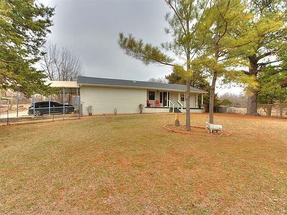 Beautiful, newly remodeled home on a serene 5-acre lot. Enter through a private security gate to your new home full of modern upgrades, including a new roof 2024 and HVAC. Open floor plan with plenty of natural light. Multiple outbuildings, including a workshop and additional storage. Three bedrooms with an option for a fourth /office and 3 full baths. A mobile home on the property was removed, but the well, septic, and electrical are still there. This would make it an easy add if you wanted to place an additional structure.8 miles to Tinker AFB and 9 miles to Lake Stanley Draper. Sellers just purchased the home in September but received military transfer orders. VA Assumable mortgage. This home and property is a must-see in person. Schedule your showing today!