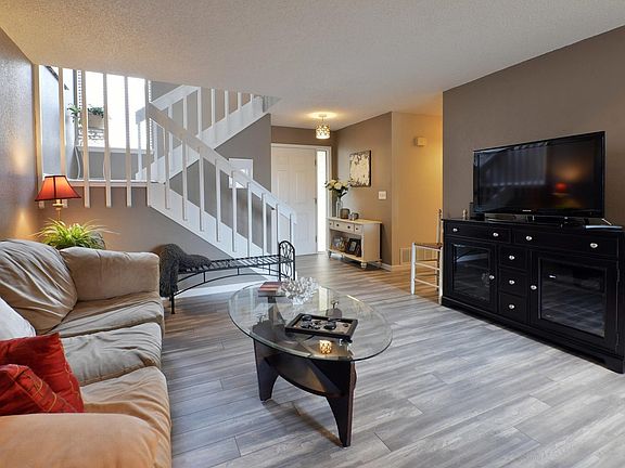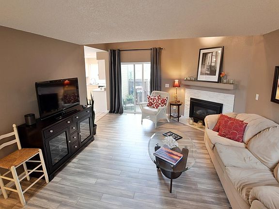 Exceptional 2-story townhome with direct access via attached garage. Recent updates throughout this 2 bedroom 2 bath. Gas fireplace with stacked stone surround. New paint in a modern neutral palette. Beautiful weathered oak laminate and brand new carpet. Striking bathroom remodels. Granite & Corian countertops. Newly updated smudge proof slate appliances. Two possible masters - main or upstairs. Main floor laundry. Pleasant natural light from windows and 2 skylights. Tucked back in the corner location providing privacy and plenty of green space off the fenced patio. New community exterior paint scheme and new patio fencing initiated and scheduled by the HOA.