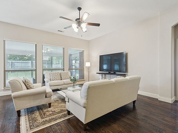 Gorgeous one-story, incredibly well maintained home in the sought after community of Cross Oak Ranch. Enjoy electric bills as low as $51 per month in the summer with solar panels and a Tesla battery that are already paid off! If there is a power outage in the area, you will still have electricity! As you enter the home you are greeted with an open foyer, high ceilings and beautiful wood floors. An office with French doors is located at the front of the home which can also be used as a bedroom. The kitchen is a chef's delight, featuring lots of cabinet space, and a large island perfect for meal preparation or casual dining. The primary bedroom has a beautiful sitting area with a wall of windows, an ensuite bath with a walk-in shower, soaking tub, and dual sinks. Enjoy countless amenities in the Cross Oak Ranch community with two sparkling pools, parks, playgrounds and miles of jogging and walking trails surrounding Tannery Lake. Home is walking distance to the elementary and middle schools!