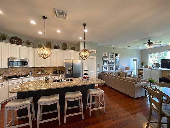 This home has recently been totally updated (2020/2021) in gated Strathmoor Estates overlooking an eleven acre lake. No detail was left untouched in this home. Open floor plan with 4 bedrooms, 3 bathrooms, 3 car garage, and beautiful Pool & Spa . From the moment you pull up to the exquisitely painted house with new roof, to the time you open the door to step on the new European oak hardwood floors, get cozy in the living room with brand new built in full of extra storage and an electric fireplace, to the upgraded kitchen with granite countertops, and remodeled bathrooms, then gaze outside to a newly screened lanai containing a paver pool and spa overlooking a lake, you are bound to fall in love with this splendid home. Light fixtures have all been updated, AC is newer. Every detail has been attended to in this house- all flooring has been replaced, roof redone, AC replaced, pavers regraded and sealed, new lanai screens, new pool heater, exterior and interior of house painted, bathrooms completely remodeled, new living room built-in featuring electric fireplace, light fixtures replaced, and additional fixtures and recessed lighting added. This neighborhood includes access to a resort style community center with splash pad, water slide, lap pool, and gym as part of the amenities.