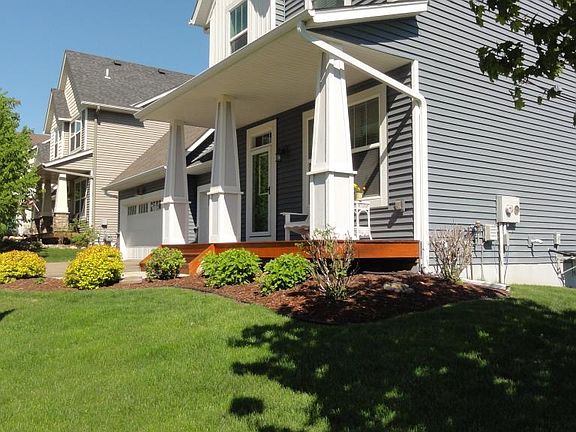 Stunning style & charm from the minute you drive up w/ front porch! Located in desirable Trout Run with a spacious & level backyard w/ sprinkler. Hickory hardwood floors through foyer, kitchen & dining. Versatile front flex room is great for home office or your choice. Attractive kitchen w/ stainless appliances, tiled backsplash, granite, corner pantry and over-sized center island opens to large bayed dining area & living room. Living room features new carpet & attractive fireplace with stone. Mudroom offers a spacious functional space with corner walk-in closet. 4 bedrooms on upper level along with 2 baths & laundry. Grand master suite is special with vaulted ceilings, skyline views and private bathrm. Bathroom features a super-sized walk-in closet, separate tub/shower, dual sink vanity with sitting makeup vanity! Walkout basement with engineered trusses (no ductwork to frame around) - ready for finishing! Great commute location! This is a special package!
