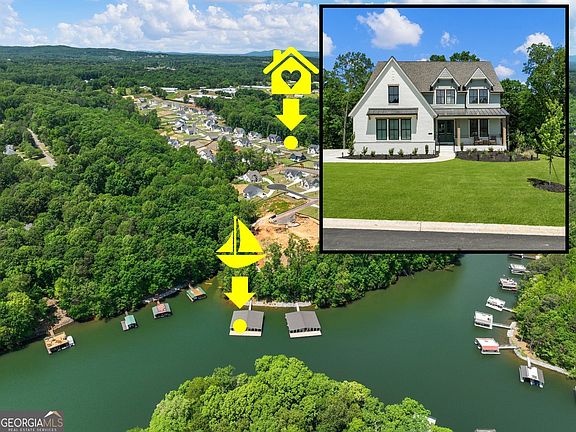 BRAND NEW - NEVER LIVED IN AND DEEDED DOCK SLIP. Welcome to this magnificent new luxurious home with one of the best DEEP WATER DOCK SLIPS in the community, nestled along the picturesque shores of Lake Lanier in Forsyth County. This pristine, NEVER-lived-in residence embodies the essence of modern luxury on Lanier, boasting upscale features and thoughtful upgrades. As you step inside, prepare to be enveloped in unparalleled luxury. The main level boasts 9-foot ceilings throughout, creating an atmosphere of spaciousness and grandeur that sets the tone for the entire home. With a total of 6 bedrooms and 5.5 bathrooms, there's ample space for all your needs. The heart of the home lies on the main level, where a gourmet kitchen awaits the culinary enthusiast. Adorned with stainless steel appliances and sleek finishes, it's a testament to both style and functionality. The adjacent family room exudes warmth and sophistication, centered around a cozy fireplace-a perfect spot for unwinding or entertaining guests. Ascend the staircase to the upper level, where 5 generously proportioned bedrooms and 4 bathrooms await, each providing a sanctuary of comfort and style. The master suite is a true retreat, featuring not only a lavish ensuite bath but also a bonus room-a versatile space ideal for relaxation, nursery, fitness, or even a private office. Adjacent to the master suite, the laundry room adds a touch of practicality and ease to daily routines. Descend into the fully finished basement, where luxury continues to unfold. A second kitchen adds convenience and versatility, perfect for entertaining or hosting guests. A home theater awaits movie enthusiasts, offering the ultimate entertainment experience. Additionally, a full in-law suite provides added comfort and convenience, complete with convenient laundry hookups, access to outdoor living, a spacious bedroom, and a full bathroom. Step outside and discover your own private oasis in the expansive backyard that has room for a pool, perfect for outdoor gatherings and entertaining after a day on Lake Lanier. With the best assigned slip in the community dock, accessing the pristine waters of Lake Lanier is effortless, offering endless opportunities for swimming, fishing, and boating. Plus, with the community being golf cart friendly, accessing your private boat slip is both seamless and enjoyable located only minutes away. Luxury living awaits at this stunning residence in Long Hollow Landing-an address where every detail has been carefully considered to offer a lifestyle of unparalleled comfort, sophistication, and leisure on Lanier. Conveniently located near GA-400 and with top-rated Forsyth County schools in the area, this home offers both luxury and practicality. Minutes to Pelican Petes and desirable SOUTH LAKE LANIER via boat. Long Hollow Landing is a desirable lake front community with a small amount of deeded boat slips in the community docks. Golf cart is INCLUDED making this a truly move in ready home. ** Welcome to your new home! **Virtual tour in details section*