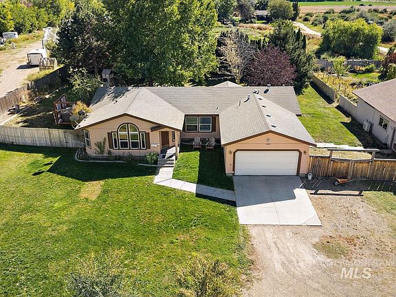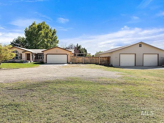Great find of close in acreage with a 60x40 shop and priced to sell!! Single level home located on 1+ acres. Big kitchen with island bar & pantry. 3 bedrooms + office. Great room and separate family room. Split bedroom plan, large master with double vanities, soaker tub & separate shower & walk in closet. Vaulted ceilings, lots of natural light. Large laundry room with mud sink. 60x40 shop with gas furnace, a/c + mini splits units. Lots of 220 outlets, lots of electrical outlets, well insulated - dream shop! Possibly run home business. Water & sewer close by, could also explore additional building permit, subdividing down the road??? Property set up for huge garden area with water set up to gardening boxes. Apricot, peach, plum, rhubarb, asparagus & berries. Quiet, serene area. Check out "fort area" in the spruce trees". Hot tub stays & play station for kids. Firepit, built in BBQ area.