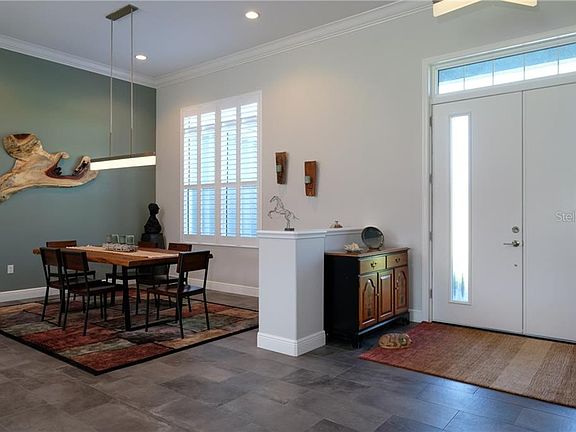 - Interior Features: Ceiling Fans(s), High Ceiling(s), Living Room/Dining Room Combo, Master Bedroom Downstairs, Crown Molding, Walk-In Closet(s), Window Treatments, Open Floorplan, Solid Surface Counters, Solid Wood Cabinets, Eating Space In Kitchen, Dry Bar, Built in Features, Stone Counters, Tray Ceiling(s), Thermostat