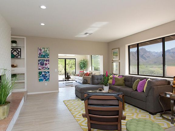 TAR Home Tour Winner! Amazing Catalina & Rincon Mountain views from this beautifully updated home.The spacious living room with fireplace flows into the den or formal dining room. The open kitchen boasts a large island with eating bar & casual dining are that opens to a covered patio. Tranquil master suite opens to a brick patio at the rear with a large walk-in closet & bath with soaking tub & separate glass-enclosed shower.The kitchen & baths contain new cabinetry, granite & quartz countertops & custom tile work with marble accents. Major systems updated, including new plumbing, wiring & ducting and hot water heater. Work permitted and done by licensed contractors. Voluntary $65 annual HOA fee gives access to private Wes Miller Park. District 16 schools. One owner is licensed agent.