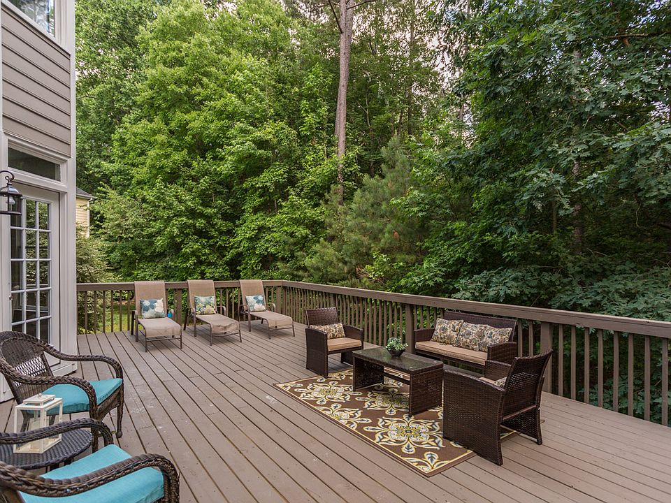 Gorgeous Cul-De-Sac home that backs to Durant Nature Park w/bright open floor plan & upgrades galore! Features a custom designer kitchen w/granite counter tops, NEW SS appliances & tile back splash. Beautiful hardwood floors; AWESOME master w/double vanities, garden tub, HUGE tile shower & WIC. New designer interior/exterior paint & carpet. Formal Living, Dining, Bonus & Office. HUGE deck great for entertaining! Convenient to 540 & 40. New roof 2017. Pool included in HOA.
