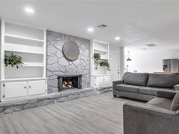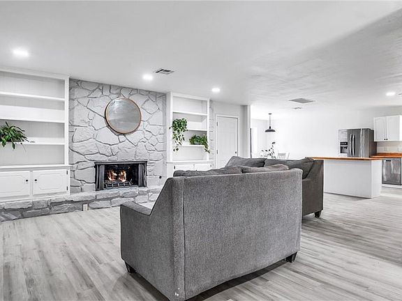 The renovations in this home have created an open floor plan that has a bright and airy feel. New countertops, flooring, and paint are all throughout, but the charm and character are still evident in several places, like the built-in shelving. The wet bar has also been updated with modern touches!