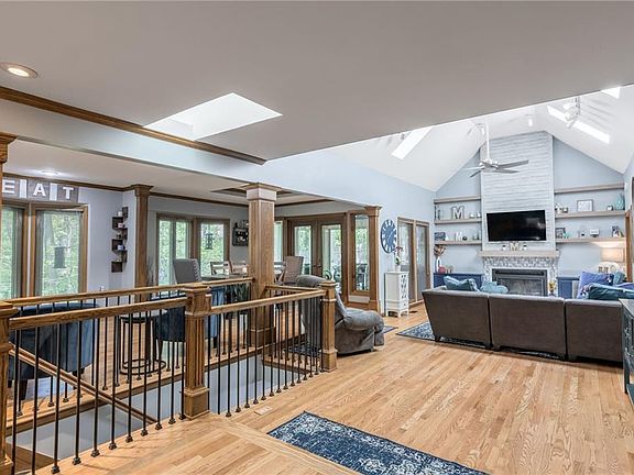 This home sits on a half acre of private woods with its own trails and scenic views, it even has an all seasons room. I can't wait for you to see all of the features inside! Main Level features an abundance of windows overlooking the beautiful nature around you! Stunning white kitchen with tons of granite countertop space and bar seating. Kitchen opens to Breakfast/Hearth Area into Formal Dining, Walks Out to Sun Room! Main Level Master with Luxurious Bath, Private Office AND All-Seasons Room. Additional Main Level Bedroom plus Versatile Third Bedroom with Full Bath. Finished Lower Level provides another 2 bedrooms and a full bath plus a FLEX room. Sun Room plus All Seasons Room offer beautiful views of Private, Treed Setting. All Seasons Room has HEATED TILE FLOORS! Walking distance to the lake! This home is tucked in a private lake community where you will enjoy outdoor activities like: fishing, boating, sailing, kayaking, trails, picnics, summer concerts, they even have a private club house. Virtual Tour and Drone video footage available.
