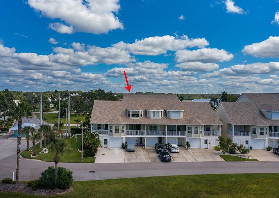 Absolutely incredible Sand Pebble community and this home has it all. It is an elegant 2 bedroom 2.5 bath with bonus loft that has many multiple uses. Oversized tandem garage located in the beautiful waterfront community of Sand Pebble and as you move toward the water on the ground level there is a half bath and another room currently with a bar and sitting area but could be an office, another bedroom or just a great entertaining area. Sliding glass door that leads outside to rear porch with ample sitting that overlooks the canal that leads you to the open Gulf of Mexico. This townhome was designed with the perfect lifestyle in mind, built with thoughtfully designed living spaces, functionality & charm. You immediately feel at home with tons of natural light from the back and front of the home and grace throughout. Sunrises from your primary room and sunsets from your front porch, living room and even from the loft. 1st level offers an oversized garage that can comfortably park multiple vehicles tandem style with extra storage closet and access to the rear room. The 2nd level offers a large open fully equipped kitchen that provides the ultimate gourmet experience with custom cabinetry, stainless appliances, breakfast bar and stunning granite countertops. The open floor plan offers a dining / living room combo with cathedral ceilings, sliding door access to front open lanai with Gulf view provides a perfect place to unwind and enjoy an evening glass of wine. This level also includes a guest bedroom with canal view, bath, and sliding glass door off the bedroom to a porch. Laundry closet is located on the 3rd level. The 3rd level provides access to primary bedroom with canal view, volume ceilings, another bath with updated cabinets and loft area which can be used as an office or den and provides a view of the Gulf through the front loft windows. This townhome offers beautifully updated luxury waterproof plank flooring throughout and carpet on the stairs. This waterfront community offers 24-hour manned security gate, stunning new clubhouse with fitness, library, card room and game tables. Pool, tennis, boat ramp, fishing pier and waterfront board walk. Kayak/Boat storage upon availability with additional fee. Sand Pebble is close to shopping, medical, waterfront dining and waterfront activities, close to historic downtown New Port Richey. Easy commute to Tampa, Clearwater, and St.. Pete. Come see for yourself!