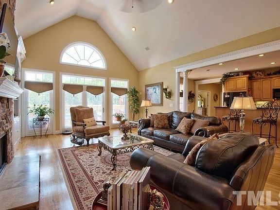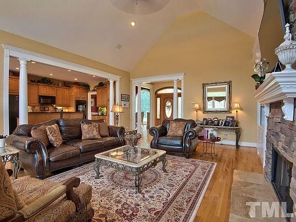 Custom all brick Executive Home on 2.25 private acres, expansive decking, pool, 25 min. to Duke. Beautiful detailing w hardwood floors, vaulted ceilings, multiple French doors to deck, Chef's Kitchen. Extra large Master Bedroom, lovely high-end Spa Bath & large walk-in closet. All living area on first floor, plus second level Bonus Room. Side-entry garage w storage. Lovely acreage with wooded backdrop, storage shed & charming "chicken condo". Private, natural setting in Bahama, minutes from Lake Michie.