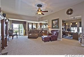 Beautiful home with fantastic outdoor living space featuring stone patio with elegant lighted water feature; outside marble top kitchen with natural gas grill and refrigerator; granite top natural gas fire pit, and outside electric. The inside is just as gorgeous; gourmet kitchen with upgraded features, custom cherry cabinets with 42 inch upper cabinets, tile backsplash, and stainless appliances. Leaded glass front door, Mendota Fireplace, custom cherry mantle & sides w/marble surround. Window coverings; custom drapes and valances with Hunter Douglas blinds; many more upgrades to take in throughout this home.