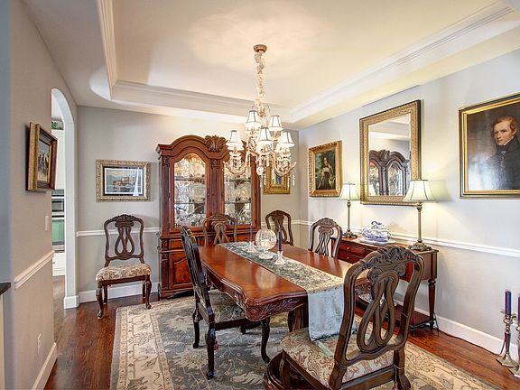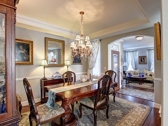 3600 square foot, 5 bedroom, 4.5 bath home in the Gated Community of Valentia Court. On a 7,405 sq. ft. lot, the Largest in the Development, with Professional Landscaping, Trees, Multiple Patios, a Gas Grill & Fire Table, Pergola, Mediterranean Fountain, & Raised Vegetable Gardens. Contemporary, yet boasts a comfortable, Traditional Floorplan with Center Hall, Formal Living & Dining Rooms, Chef's Kitchen with high-end Stainless Steel Appliances, a Large Island, Granite Counters & 42 Custom Glazed White Cabinets adjoining a Large Breakfast Room & Family Room with Antique Mahogany Mantel on an Energy Efficient Gas Fireplace. The Dining Room has a Trayed Ceiling & Chair Rail, & most rooms are topped with beautiful Crown Molding. The Master Bedroom also offers a Gas Fireplace & 5 Piece Bath. The Fully Finished Garden Level basement provides a 5th Bedroom, Full Bath, a Large Wet Bar with Stainless Steel Appliances & Granite Counters, as well as a Media Room and Large Lounge/Game Room.