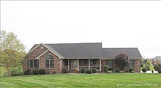What a marvelous view this property offers sitting on more than one acre. This spectacular all brick walk out ranch features a large covered deck, an above ground pool, covered patio, 2 car attached garage, lower level utility garage, a spacious living room with cathedral ceilings, a master bedroom with a huge walk-in closet, a new roof and stainless appliances in kitchen as of 2012, an eat-in kitchen that features a breakfast bar, bay window, and lots of counter space, all windows are caulked, and home has dual water heaters. This home also has a spectacular basement for your living comfort with lots of space, also includes lots of shelves for storage and a wet bar with built in refrigerator that stays. Located minutes to the interstate. One year home warranty which includes pool coverage\n\nInformation Deemed Reliable But Not Guaranteed. Information provided by the Southern Indiana REALTORS® Association, Inc. © 2010 SIRA Multiple Listing Service. All rights reserved. Brokered And Advertised By: RE/MAX FIRST Listing Agent: Richard M. Thompson