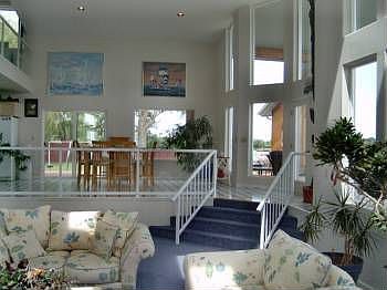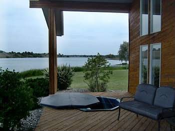 Unigue 4076 Sqft Custom Home with 375' of No Bank Waterfront. 2400Sqft Deck with Hot Tub. 1 Acre Lot. Very Desireable Location on the lake.