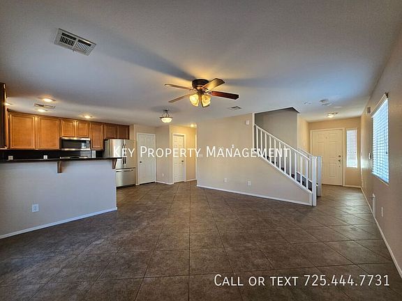 Great end-of-the-street, corner lot, 3 bedroom, 2.5 bath home with a 2-Car Garage off of Blue Diamond and Cimarron. Island kitchen with stainless steel appliances. All Appliances are included in this home. Ceiling Fans and blinds throughout. Low-maintenance backyard with patio. Conveniently located near shops and restaurants.