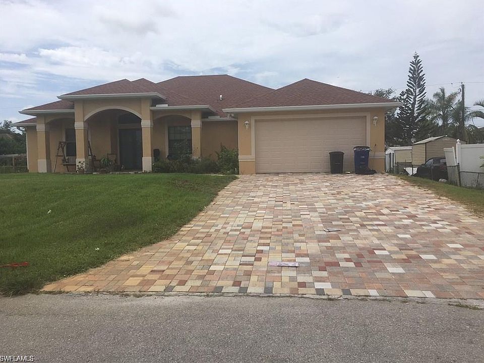 Location, location, location! New home in San Carlos Park, built by owner with a million custom features in 2015/2016. Custom cabinets all over the home including a 16' entertainment center in living room. Marble bathroom floor and walls, All is like new. Choice home warranty on all features and a/c, appliances, plumbing and electric is provided for buyers at owners expense for peace of mind buying. Owner is very motivated to sell-make an appointment and bring your offer. 1/4 acre Lot next door is available for buyers and can be negotiated if buyers want a double lot for this beautiful home.........Call today to make it yours!!