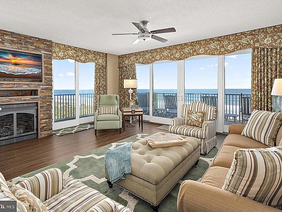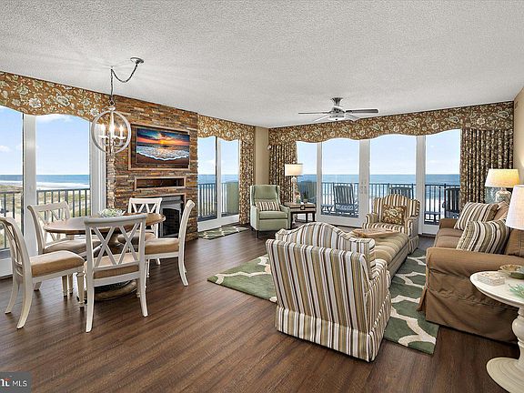 Experience the very best of Oceanfront Living! Step into coastal elegance with this stunning direct oceanfront three-bedroom, three-bathroom condo, where every detail reflects the essence of luxury beach front living. This immaculate condo features high-end upgrades throughout, including Cambria Quartz countertops in both the kitchen and primary bath. Enjoy breathtaking, unobstructed ocean views from the extended wrap-around balcony, accessible from multiple rooms—including the living area, kitchen, and two bedrooms. The modern kitchen boasts stainless steel appliances, a large island with breakfast bar, and a stylish backsplash. The primary suite offers a peaceful retreat with a walk-in shower, and double-sink vanity. A cozy fireplace enhances the spacious living area, while natural light and coastal hues create a bright, cheerful ambiance. Additional features include full-size washer and dryer, secured elevator access, and tasteful furnishings throughout. Located in the heart of Ocean City’s midtown, you’re just minutes from shopping, dining, and entertainment. Come see why Unit 201 is the perfect place to live your coastal dream—where style, comfort, and oceanfront serenity meet.