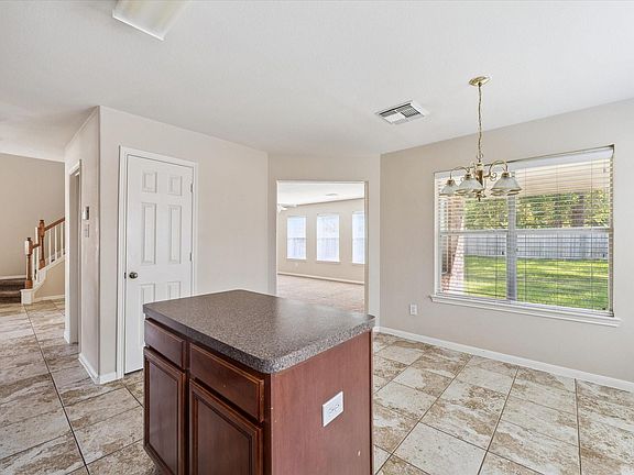 This two-story home in Creekside Place offers a functional and spacious layout with all bedrooms conveniently located upstairs. The primary suite features a large walk-in closet and a luxurious bath with double vanities, a whirlpool tub, and a separate shower. Generously sized secondary bedrooms and a large game room complete the upstairs space. Downstairs, you'll find a formal dining room, an island kitchen with abundant storage, a gas range, and a large breakfast area. The inviting den includes a cozy gas fireplace, perfect for relaxing or entertaining. Step outside to a covered back porch overlooking a fully fenced, oversized backyard ideal for play or outdoor gatherings. Move-in ready and ready to welcome you home!