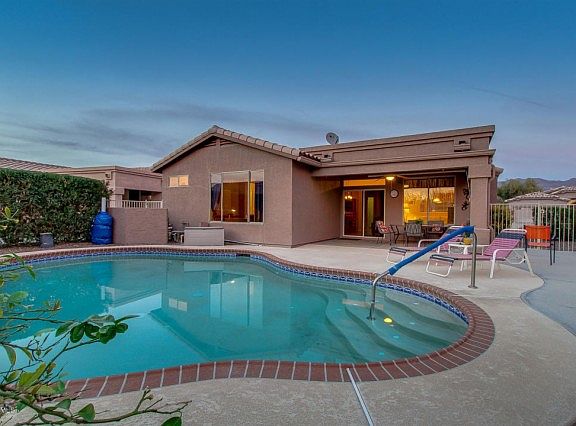 WOW! *** A MOUNTAINBROOK VILLAGE HOME with a MOUNTAIN VIEW & HEATED POOL UNDER $240K***just in time for Christmas! GREAT BUY!You'll love the ***NEW AC***roomy GREAT ROOM floor plan with 3 BEDROOMS and a cozy GAS FIREPLACE!The BIG OPEN KITCHEN boasts a LARGE CENTER ISLAND, double pantry cabinet, RARE GAS COOKTOP and a CONVENIENT BUILT-IN KITCHEN DESK & pass through window!TILE FLOORS throughout with NEUTRAL PAINT COLORS and lots of inside STORAGE! Check out the backyard's BEAUTIFUL POOL & VIEW FENCE to NATURAL DESERT & MOUNTAIN VIEWS! An OVER-SIZED LOT comes with ORANGE & LEMON TREES, great curb appeal with EASY TO MAINTAIN DESERT LANDSCAPE! The home comes with...