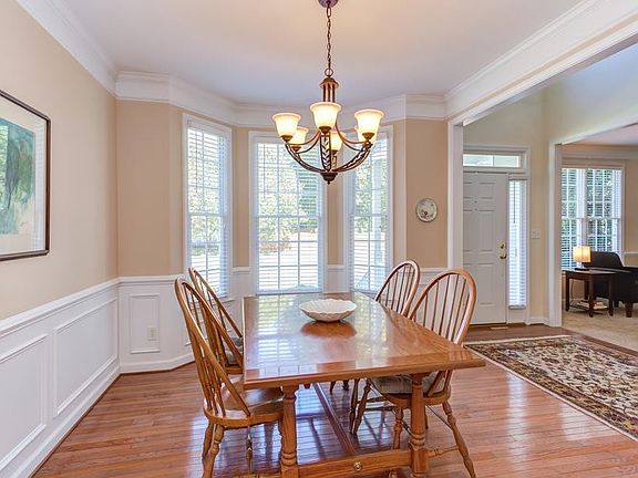 Bright, beautifully-maintained home with a generous, welcoming Foyer. In Eagles Pointe, strategically located with convenience to RTP, RDU, Chapel Hill, Durham and Raleigh. Beautiful crown molding & wainscot. Spacious Dining Room. 1st-level Office. Open Kitchen-Breakfast Nook-Family Room. Butler's Pantry plus additional Pantry. Primary bedroom with jetted tub, separate shower, large walk-in closet and walk-in attic storage. 2nd-level Bonus Room. 2-car side-entry garage with workshop area. Fiber cement exterior. (This house features a well-designed floor plan with the staircase - not conspicuously off the foyer - but in the rear, off the family room.) Large deck overlooks private, fenced yard. A gem! Upgraded R-30 attic insulation, crawl space insulation, vapor barrier. Added plus, Flytrex delivers local dining via drone for free to this neighborhood!