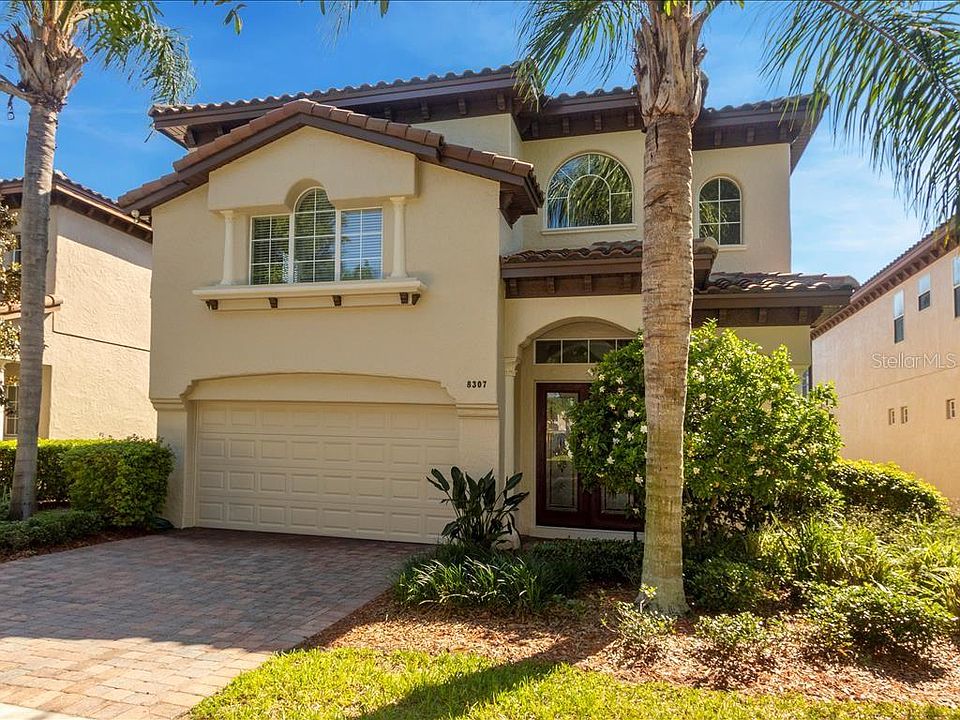 REDUCED: Beautiful lakefront estate home in guard gated Vizcaya. Located on the Small Sand Lake (ski lake), the home boasts 5 bedrooms and 4 bathrooms. As you enter the home and through the foyer you have the formal living and dining rooms. The spacious kitchen opens to the family room which has sliding doors that open to the pool/patio area with picturesque views of the lake and the Orlando Eye. The gas fireplace in the family room is perfect for the chilly evenings. There is also 1 bedroom on the first floor. The Master suit along with 3 bedrooms and 2 bathrooms as well as a large bonus room and the utility room are located on the second floor. Once you walk through the double door of the master suite you have a view of the lake and the Orlando eye. The suite has a sitting room which can be used as s small office.The bonus room can be used as a 6th bedroom/library/office/media or video room. The brick paved patio has a summer kitchen with a fridge. The exterior of the home has just been painted. The community is a short distance to Shopping, Restaurants, Supermarket and Banking and close proximity to Dr. Phillips Hospital.
