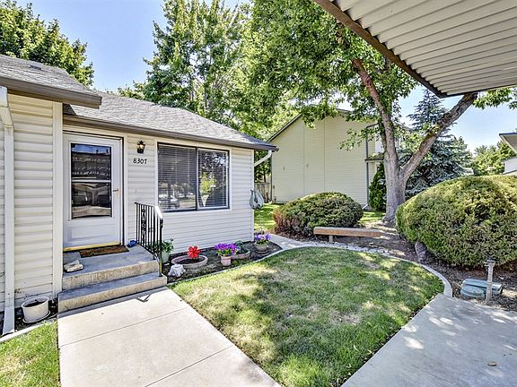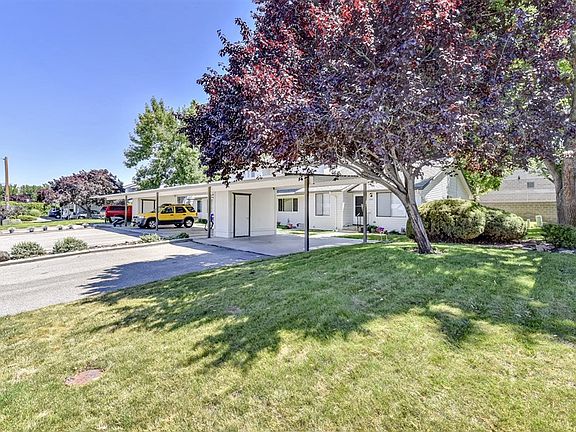 This gorgeous single level condo is move in ready. This condo has 2 bedrooms and 2 bathrooms, master with en suite. The master bedroom has it's own private entrance onto the secluded back patio. This condo is on an end unit which provides lots of privacy. Covered parking spaces for two vehicles and beautifully maintained common areas. The HOA covers water, trash, exterior maintenance, and lawn maintenance. This home has new flooring throughout, new furnace, new ac, new heat pump, new fridge, and new fence.