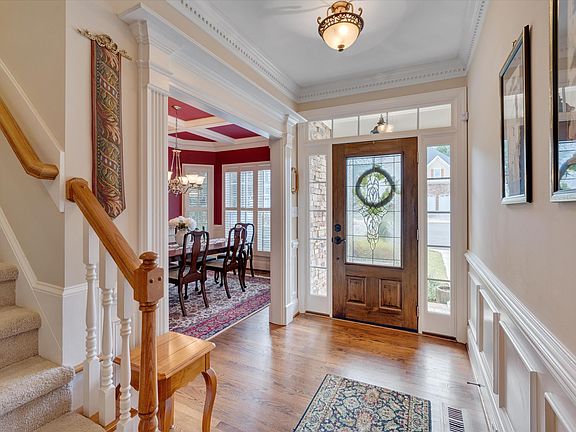Welcome to 8308 Cazavini Court in Raleigh, NC—a home that perfectly blends comfort and style. This gorgeous home offers up to 6 bedrooms and 3.5 bathrooms across 3,795 square feet of living space, situated on a cul de sac in the Springstone neighborhood of Northwest Raleigh. As you step inside, you'll be greeted by a welcoming foyer with beautifully refinished hardwood floors that leads into a spacious living area, highlighted by high ceilings and a cozy fireplace. The chef's kitchen is the star of the home, complete with a 6 burner Thermador gas cooktop, double ovens, prep sink, wine cooler and butler's pantry—ideal for all your culinary adventures. Enjoy casual meals in the eat-in kitchen or entertain guests with ease in the dining room featuring stunning coffered ceilings and wainscoting. Additional premium details include custom plantation shutters, dentil molding and walk in pantry. Outdoor living is a delight with a private screened porch with beautiful wood paneled ceiling that includes a fireplace, dual ceiling fans and entertainment system, perfect for relaxing evenings. A charming patio and raised garden beds take advantage of every square inch of the beautifully landscaped yard. In the crawlspace find a special closet built for storing wine at the optimal temperature! The primary bedroom is a peaceful retreat featuring a sitting area, walk-in closet and a grand ensuite bathroom with jacuzzi tub, separate vanities and walk in shower. Three more rooms on this floor offer lots of options for bedrooms, office or bonus space. The finished 3rd floor offers a 3rd full bath and 2 more large bedrooms, one with a fun hideaway that could also be used as storage. Located within walking distance to Lake Lynn, Springstone is also convenient to I540, restaurants, shopping and multiple community and private recreation centers. Make this home your new sanctuary in Raleigh today!