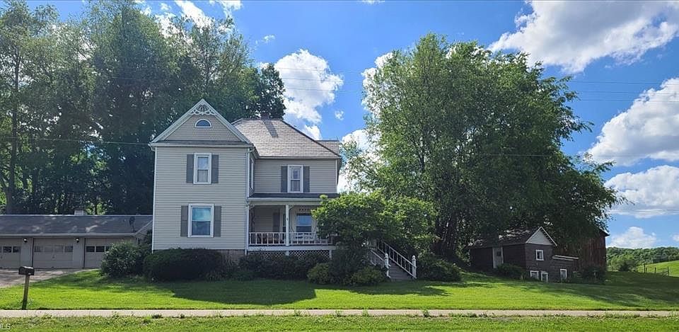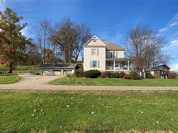 Beautiful rural views from this two story home with many unique qualities including FREE GAS, hardwood floors and oak trim throughout! The wrap around front porch is perfect for relaxing and enjoying the spectacular country views and overlooks the Zoar Golf Course. The living room has many windows & built in storage. Formal dining room with fireplace, built in cabinet/storage, beamed ceiling and bayed window for natural lighting. Kitchen has custom built cherry cabinets with plenty of storage & center island. First floor laundry and full bath. Second level features large master bedroom, ample sized second and third bedrooms plus half bath with large closet and dressing area. Unfinished basement has plenty of storage area. Detached 3 car garage includes workshop area- 2 side/back walls rebuilt in 2018. There is a springhouse on the property and barn with fenced in area perfect for chickens/goats. Some updates include: windows, 2018 Rebuilt garage back/2 side walls, 2018-new central air/new refrigerator/new range/new microwave/44 gallon holding tank/new ceiling light fixture, 2019-restored fireplace & chimney, vermin proof 5 well cap, added additional drive beside garage plus more. New septic system to be installed/in process. Conveniently located close to shopping/dining/several golf courses/breweries and wineries close by plus close to The Historic Village Of Zoar. Perfect place to call home and if your a golfer you can walk over anytime!