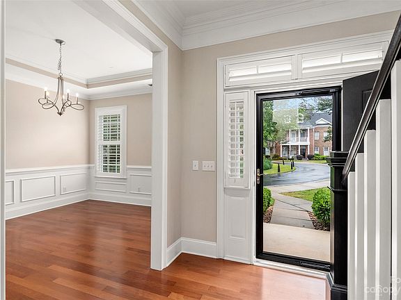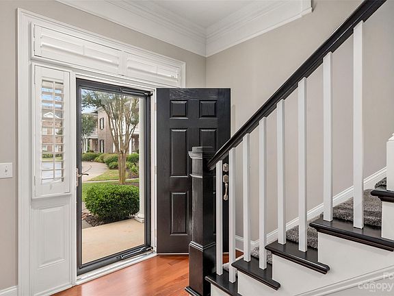 Georgian Style brick townhome located in Indigo Row w/ close proximity to Ballantyne. 3 bdrms, 2.5 bathrooms, spacious open floor plan w/ hardwood floors throughout the main level & new upgraded carpet/padding. Great room has a new gas fireplace burner, logs & amp; decorative reflective fire glass. Kitchen features included: granite countertops, tile backsplash, a breakfast bar, upgraded cabinets, built-in butlers pantry $ bar. All new kitchen appliances. Recently painted entire unit inside including ceilings, walls & garage. New light fixtures throughout including kitchen/dining room chandeliers, bath vanities, & new ceiling fans in all bdrms and den. New hardware on all entry doors and bathrooms. Plantation Shutters throughout the house. New Anderson front glass storm door. New hot water heater. Finished 2 car garage. Recent comprehensive full house electrical & plumbing HVAC inspections. Private unit with back patio offers privacy from one side via brick wall.