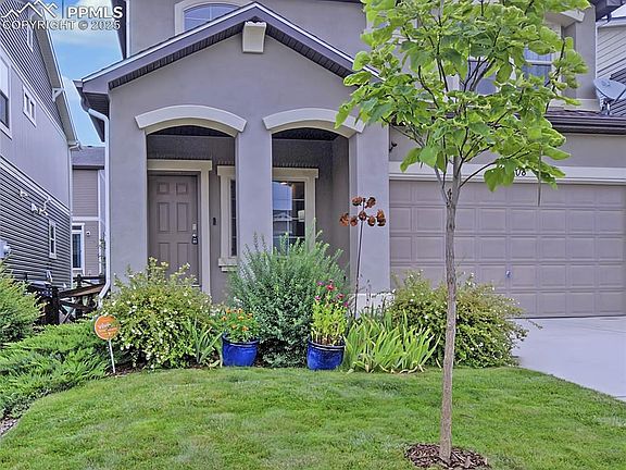 Check out this perfect home for the budget minded Buyer that not only likes space-saving layouts but also convenience of location and tons of amenities. This wonderful 3 Bed, 3 bath, 2-story home in Banning Lewis Ranch packs so much in it's nearly 1900 Square foot package. The main level features your primary living room; dining space with walkout to back yard; kitchen with granite counters, wood floors, island and pantry; laundry; guest bath; utility room and mudroom with dedicated circuit for extra fridge or freezer. Upstairs is where you will find a tech drop station, complete with a Cat 5 wiring, just outside the entrance to the Primary Suite. The Primary Suite is spacious and is attached to an amazing bath with a comfort height dual vanity, spa-like shower with dual shower heads and a large walk-in closet. A secondary living space is perfect for your movie nights, video game competitions or as a work out room or office. two additional bedrooms, both with walk-in closets and full bath compete the upper level. Additional upgrades include new carpet, central air conditioning for optimal comfort year-round, a two-car garage with storage shelving, extended concrete patio, terraced garden with strawberries, raspberries and blueberries plus a turf lawn in the backyard make for an easy and fun outdoor living area. Banning Lewis offers a wide range of upscale amenities tailored to diverse needs and interests. From The Banning Lewis Ranch Academy to state-of-the art Ranch House, Pickle Ball Courts, and luxurious swimming pools and splash park to meticulously landscaped parks, dog parks and extensive trail systems, The Banning Lewis Community offers an unparalleled array of opportunities for learning, leisure, recreation, and relaxation. Centrally located near Marksheffel and Dublin, it's an easy commute to Schriever SFB, Peterson SFB, Fort Carson, the Powers Corridor and the Air Force Academy. Conveniently located near Schools, Shopping, Dining and Entertainment.