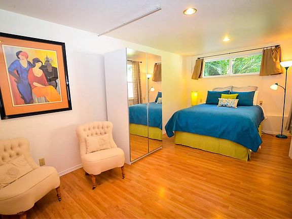Charming, cedar-sided cottage retreat on large lot w/territorial view. Convenient to Bastyr Univ, Kirkland, dwntwn bothell, burke gilman trail and slough. Beautiful mature landscaping provides seclusion and privacy on .35 acres .Upstairs features an open and bright great room with tile flooring, big picture windows,free standing gas heat stove, french doors to deck and carport. Downstairs guest suite has separate entrance, large kitchen and spacious studio layout. Washer and dryer in both units.
