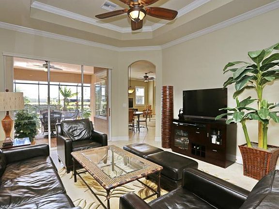 You'll enjoy an active Florida Lifestyle in this spacious 5 bedroom 3 bath MAINTENANCE FREE home within the gates of River Strand Golf and Country Club. Take in the outstanding SOUTHERN views of the lake and golf course from the expansive screened enclosure featuring brick pavers and heated salt water pool and spa. Lovingly maintained the exterior of the home was professionally painted in January 2015. Outstanding features include open floor plan, plantation shutters throughout, porcelain tile floors, 12' trey ceilings, crown moldings, granite countertops, solid wood cabinets and S/S appliances. The spacious owner's suite features a large sitting area, his/hers closets and ensuite bath with separate tub and walk-in shower. A large den is located off the foyer and has a closet for the 5th bedroom if needed. Located in the "Estate Home" section of River Strand, ownership INCLUDES GOLF and full Country Club membership in the 39,000 sq ft facility featuring a 27 hole Arthur Hills Championship golf course, tennis club with 8 Har-Tru lighted courts, 6 heated pools and state of the art fitness center and restaurant offering fine dining and grill room. Living is easy, secure and convenient in this maintenance free, active lifestyle community! The Owners are motivated, flexible and are willing to sell all of part of the furniture and contents in a separate agreement. *Please refer to "Realtor remarks" for a complete breakdown of fees.* This is a Sawgrass model and a floor plan is attached.