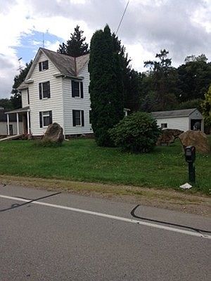 2nd owner. Beautiful cherry and knotty pine wood throughout, hardwood floors, replacement windows, dog pen, 1st fl half bath, nice eat-in kitchen, clean basement w/ area for workshop, generous size rooms, beautiful cherry dining room, Lennox furnace, new garage door. Home and its slate roof have been well maintained, nice level lot, country living close to hospital, shopping, schools. Home warranty included. Condition of dishwasher unknown. Attic area not included in sq ft.