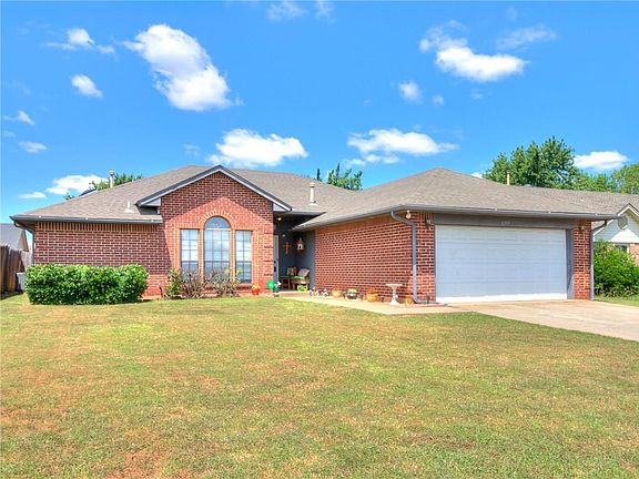 Moore School District & Well Maintained! Seller willing to offer a $600 new kitchen appliance allowance with acceptable offer! Newly replaced Hot Water Tank (2018), HVAC (2018). Seller is offering a transferable 5 year warranty for the HVAC system (new owner will receive remaining months at the time of closing at no additional costs). Newly replaced Disposal (2018). Master suite features his & her closets, walk-in shower & whirlpool tub. Ceiling fans throughout the home add a nice calming element to each room. Privacy fenced backyard with a beautiful Gazebo for outside entertainment. Easy access to I-240 and within minutes of Tinker Air Force Base. Come & see if this home is right for you!