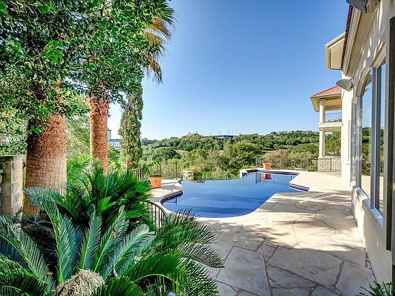 Come and enjoy the outstanding resort lifestyle associated with The Ridge at Barton Creek! This stunning custom home offers panoramic Hill Country, Resort and Golf Course views backing to expansive greenbelt. Private negative edge pool, gourmet kitchen, study, game/hobby room off the kitchen. Private entrance to Garage apartment offering living, kitchen, bedroom and full bath. 2 car plus golf cart garage, storage galore, stone floors and cherry hardwoods, mahogany doors. Second game room or large view 4th bedroom up. The Ridge is a private fully fenced and gated enclave of luxury homes featuring direct golf cart access to the facilities of the Omni Resort, spa, golf and Barton Creek Country Club.