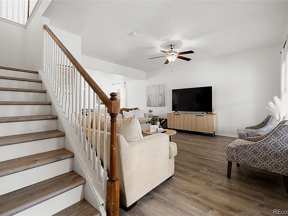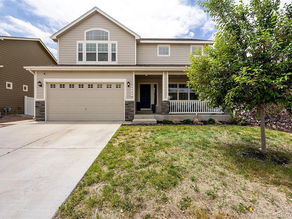 Attractive 3BR, 3BA, 2-story home with room for expansion in the 900 sf unfinished Basement. 2380 sf of comfortable finished living space with open main level floor plan, great for entertaining family and friends. Covered front porch to enjoy your morning coffee and the Colorado sunshine. Gorgeous LVP floors through most of the home. Window blinds, drapes and rods stay. Central air and heat for year-round comfort. The Entry has stairs to the upper level and leads into the Living Room boasting a lighted ceiling fan and a wall of windows that provides abundant natural light throughout the main level. The Dining Room has a slider out to the back patio for outdoor dining and relaxation. The Island Kitchen offers a walk-in pantry, counter bar, white cabinets and granite countertops. Appliances include a smooth top range oven, built in microwave, and dishwasher. ML Powder Bathroom. The Upper Level hosts a Loft, Laundry Room, 3 BRs, and 2 BAs. The Laundry Room has a tile floor, built-in shelf and convenient access to the Primary Owner's Bathroom. The Loft is versatile space that can be used for such things as an office, family room, or play room. The Primary Owner's Suite is a private retreat with a vaulted ceiling, lighted ceiling fan, wall of windows, and 5pc Spa Bathroom. The Primary Owner's Bathroom includes a dual sink raised vanity, tiled soaking tub, separate shower, and walk in closet. 2 more Bedrooms share a Shower Hall Bathroom with vanity, mirror, and tub/shower. Three car tandem garage. Large, fenced level backyard with sprinklers where you can enjoy BBQs on the patio, planting flowers in the raised beds, or sitting around the fire pit. Conveniently located close to schools, parks, and shopping. Easy commute to Fort Carson, Peterson Space Force Base, and Schriever Air Force Base. This delightful home is move-in ready and waiting for you to call it your new home!