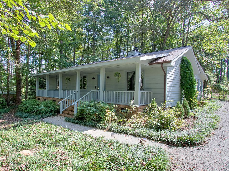 Nature lover's dream! Lovely move-in ready home w/ open split bedroom floorplan and den/sunroom with high ceiling, flooded with light. Freshly painted inside and out. New roof in 2014. New furnace in 2011. Guest bath totally remodeled with all-new fixtures in 2015. Abundant built-in storage in den, and extensive cabinet space in kitchen. Breakfast bar with bookshelf - perfect for cookbooks. Bright sunny eat-in kitchen. Stainless appliances with a newer super-capacity convection oven for the largest holiday dinners and a new refrigerator in 2014! Listing price includes two lots, just under 2 acres total. One full acre fenced for pets, with additional fencing around five raised beds for vegetable gardening and a huge low-maintenance rain garden!