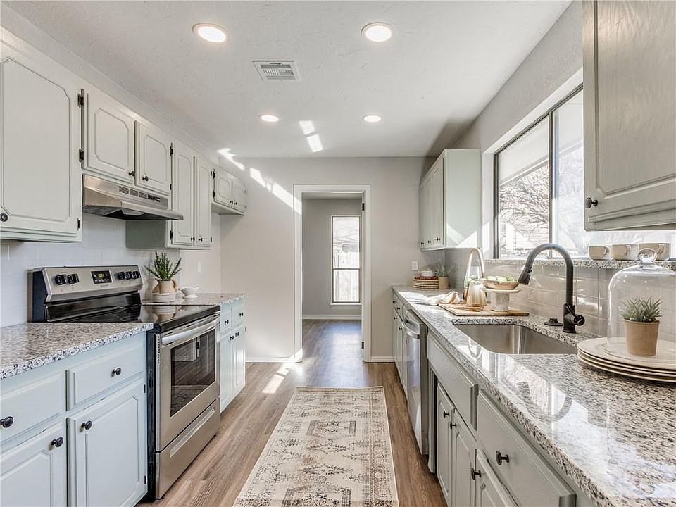 Looking for a super spacious and beautifully updated home for living and entertaining? This is the one you've been waiting for! Featuring a huge wet bar with tons of storage, granite countertops throughout, brand new appliances, modern tile tub surrounds, new flooring throughout, a huge fireplace, dedicated laundry room, pantry, and two walk in closets in the primary bedroom, this home has it ALL. Super convenient location close to Turnpike and NW highway. Owner licensee # 182797.