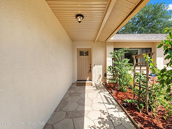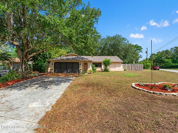 Welcome to this charming 2-bedroom, 2-bathroom home nestled on a spacious corner lot in the heart of Spring Hill! Situated on 1/3 of an acre, this property offers the perfect blend of privacy and potential, with mature trees providing natural shade and a fully fenced backyard. Inside, you'll find a warm, inviting layout with neutral finishes throughout. The primary suite features a large walk-in closet and a private en-suite bath with walk-in shower. The second bedroom includes generous closet space and easy access to the second full bath—perfect for guests or a home office setup. Step out back into your screened Florida room—a peaceful, all-season retreat that overlooks your beautifully shaded yard. The backyard features a stand-alone shed, ideal for extra storage, hobbies, or even a garden workspace. Enjoy outdoor living under the canopy of mature oaks, or lounge in the 24 foot above ground pool. With a designated picnic area and a concrete pad for your boat, trailer, or RV. The corner lot offers extra space and privacy without sacrificing convenience. Additional updates include a newer roof (2022) and garage door (2015). AC works great and is serviced every year. Additionally, this home is set up for Fiber internet. No HOA and plenty of room to make it your own—don't miss your chance to call this hidden gem home!