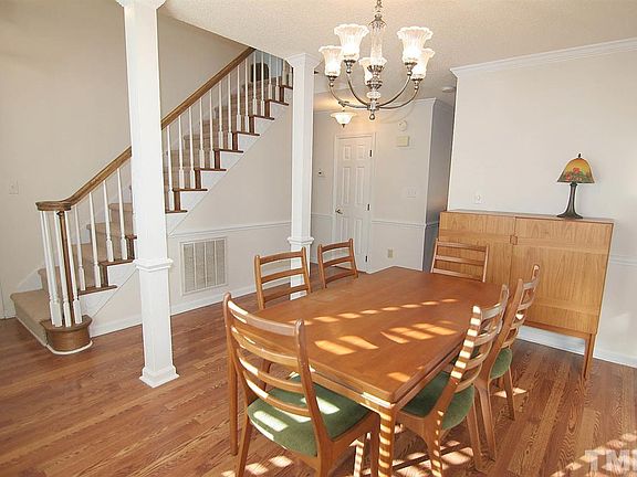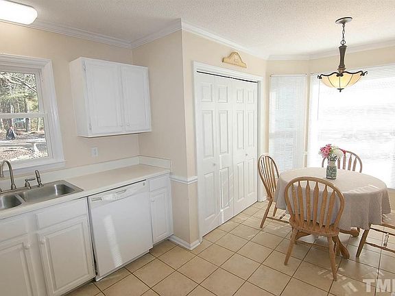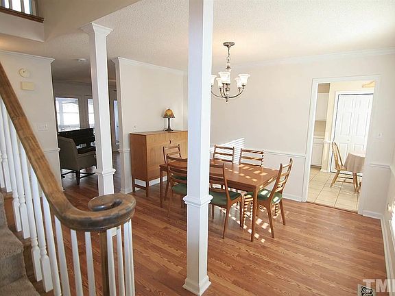 Beautiful home on .69 acre private lot in Apex, Cul-De-Sac, with over-sized deck and huge enclosed porch. New carpet, freshly painted rooms and all new windows. 1st floor master bedroom, 2 bedrooms upstairs, flex room, plus office. Large living room with gas log fireplace, plus separate formal dining room. One car attached garage, no HOA dues and only county taxes. Stick built house by Montaque.