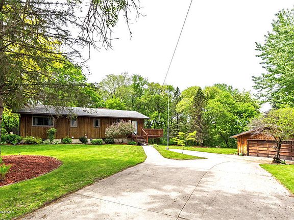 Don't miss this hobbyist dream property with a fantastic location! This two bedroom, two bath home offers a great room with a brick fireplace, hardwood flooring, and vaulted ceilings, remodeled bathrooms, and so much more! The over half-acre lot is landscaped with woods behind. Enjoy the wrap-around deck and convenience to parks and walking paths this summer! Four heated garage stalls.
