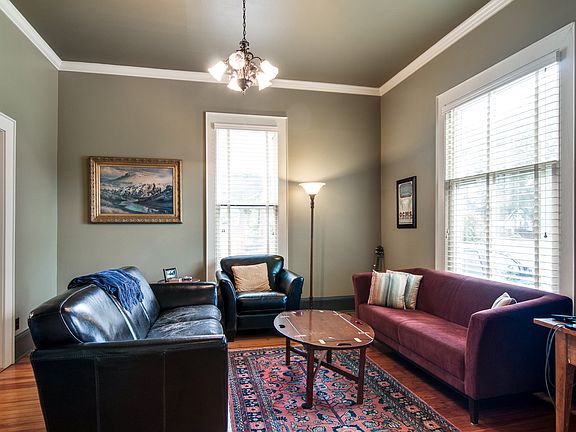 Tons of original woodwork - hardwood floors, trim and FP mantel. Great kitchen w/white and glass front cabinets, granite counters and SS appliances. 10.5 ft ceilings throughout. Tiered backyard is amazing and connects to back alley.