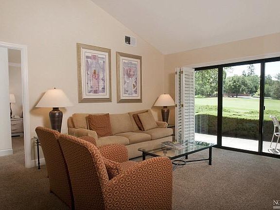 Envision a vacation lifestyle at Oak Creek at Silverado. This single-story condo is highly desirable and rarely available. The open floor plan includes 2BD/2BA, cathedral ceiling, fireplace, custom cabinetry, and plantation shutters. A front enclosed patio provides privacy, the rear patio offers a golf course view. Complete exterior renovation. Currently enrolled in the Silverado Rental Program, furniture included. Transferable Membership avail.