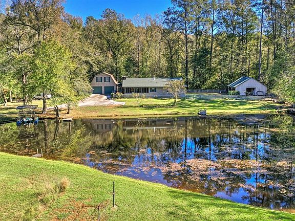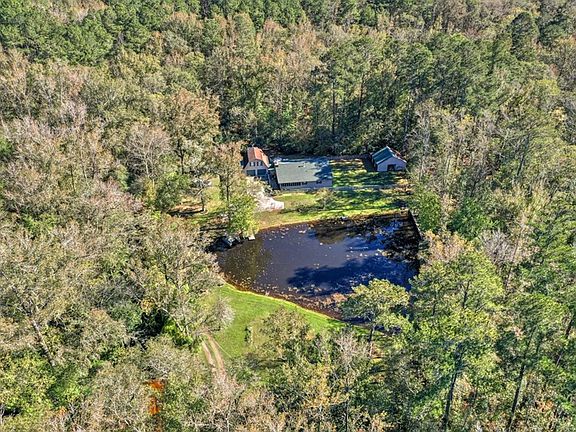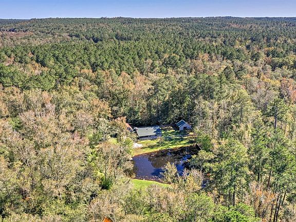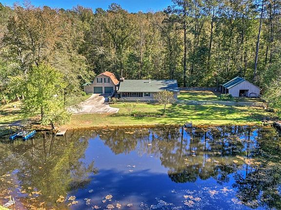 Tucked off the road and through the woods is your new, private paradise! This home, sitting on 2 acres, has so much to offer! Offering 2-bedrooms, 2 -full bathrooms, a large, open concept living room- dining room-kitchen with over 9' ceilings throughout, 2-ports for the central vacuum system, large stone fireplace and wood stove, front room with large walk-in closet (it can be used as an office or music room), front screened porch, and large back deck overlooking the creek. The 2-car garage is a real treat for the person who likes to tinker, with an attached workshop, grease pit, and mounted engine hoist. Above the garage is a large, 23' x 14' unfinished storage room with an outside entrance that has endless possibilities! All appliances remain except for the freezer in the garage. The property has 2 additional storage buildings, fruit trees, grape vines, and the pond is stocked with fish! Located just minutes from North Augusta shopping and restaurants and I-20 exit 5.
