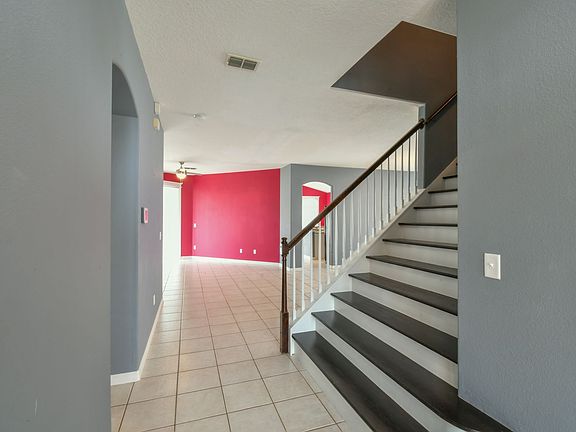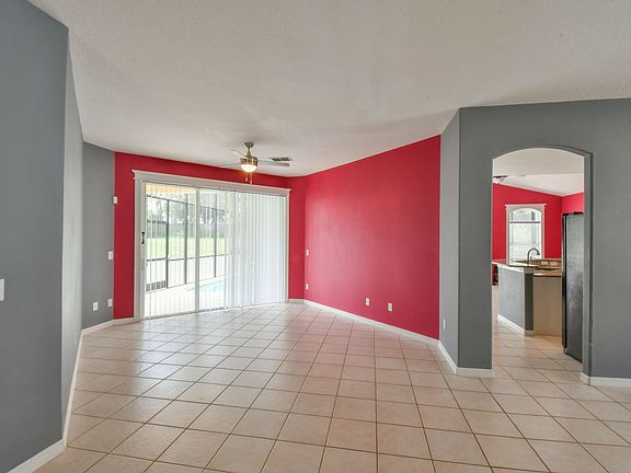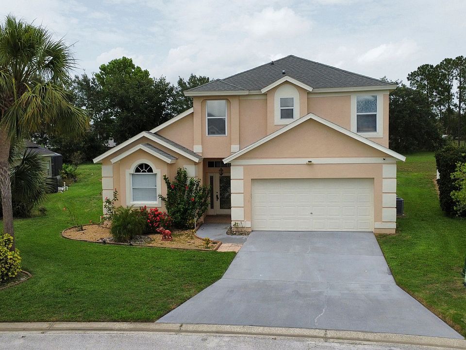 Welcome to this spacious 5 bedroom, 3.5 bathroom pool home located in the desirable Tuscan Ridge community in the Davenport area, just minutes from Disney and Championsgate. This beautifully maintained residence features an open floor plan with the master bedroom conveniently located on the first floor. All bedrooms boast brand new laminate flooring, while the updated kitchen and bathrooms are finished with elegant granite countertops and durable ceramic tile. The home is equipped with solar panels providing savings on electric bills. Step outside to enjoy the screened-in heated pool and spa, offering the perfect space for relaxation and entertaining year-round.